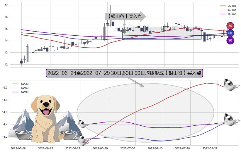 ⚀ 2022-06-27-日至2022-07-29-日显现 30日-60日-90日均线 【银山谷】买入点 看多信号,后市看涨,买入