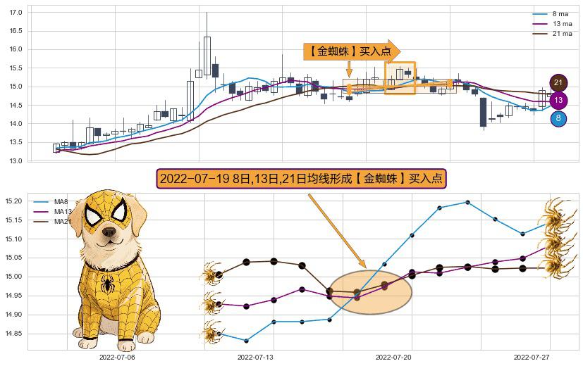 ⚀ 2022-07-19日显现 8日-13日-21日均线 【金蜘蛛】买入点 看多信号,后市看涨,买入