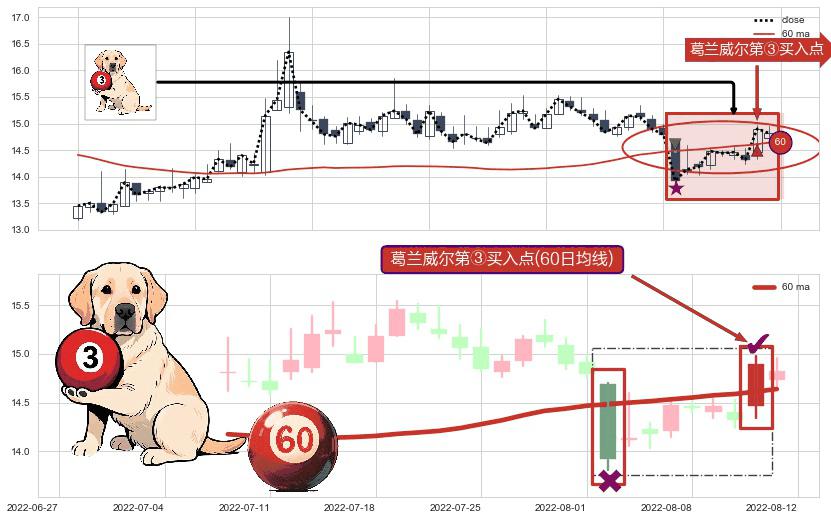 ⚀ 2022-08-11-日显现 葛兰威尔均线 60日均线 第③买入点 上升趋势的中继信号,后市看涨,买进信号