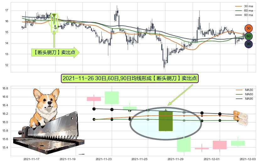 ⚀ 2021-11-26日显现 30日-60日-90日均线 【断头铡刀】卖出点 看空信号,后市看跌,卖出