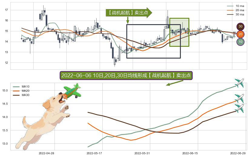 ⚀ 2022-05-12日-2022-06-27日显现 10日-20日-30日均线 【战机起航】卖出点 看空信号,后市看跌,卖出