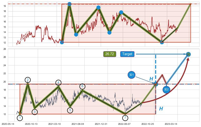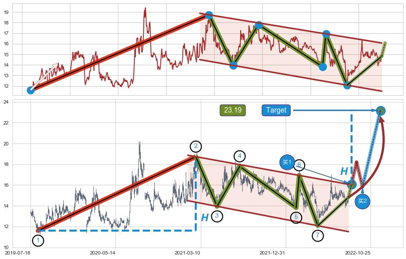 ➣ 最小中继整理涨幅→𝐇: 7.12 (𝐇旗杆的长度:旗杆起点→顶点)