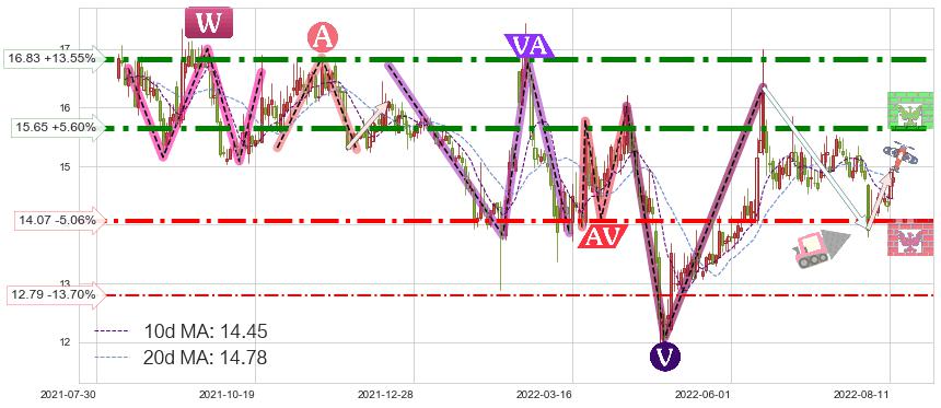 ➢ 2022-08-11到达第❶价格目标位置14.90