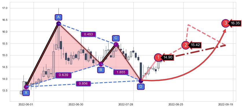 ➣ AI预测: 假定反转继续,第❷价格目标位置(2022-08-26, 15.42)