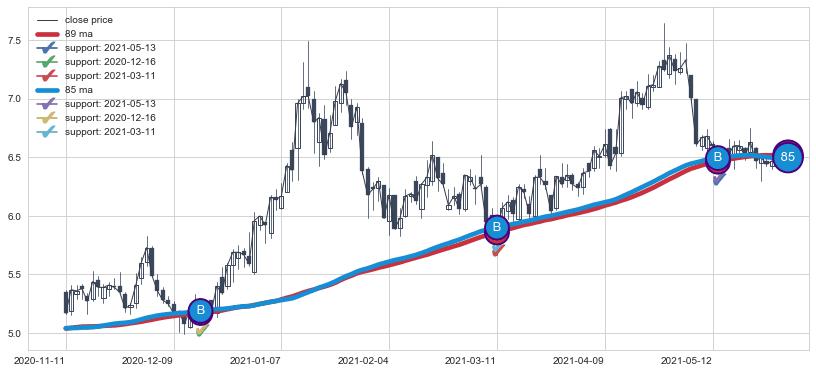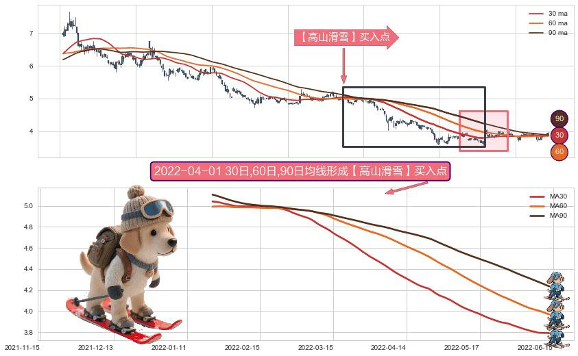 ⚀ 2022-01-20日-2022-06-14日显现 30日-60日-90日均线 【高山滑雪】买入点 看多信号,后市看涨,买入