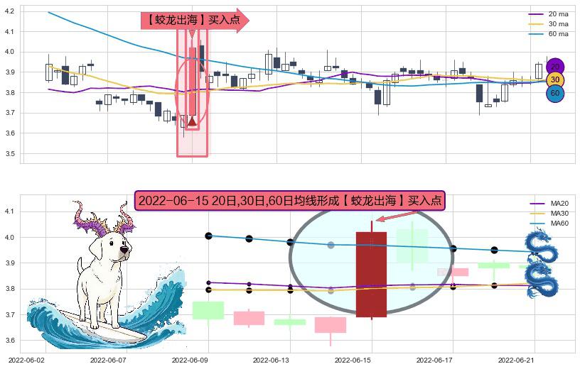 ⚀ 2022-06-15日显现 20日-30日-60日均线 【蛟龙出海】买入点 看多信号,后市看涨,买入