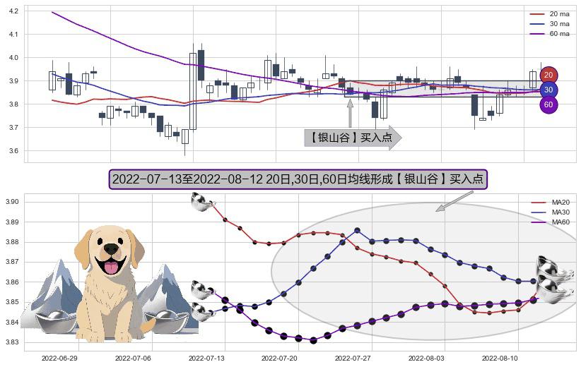 ⚀ 2022-07-14-日至2022-08-12-日显现 20日-30日-60日均线 【银山谷】买入点 看多信号,后市看涨,买入