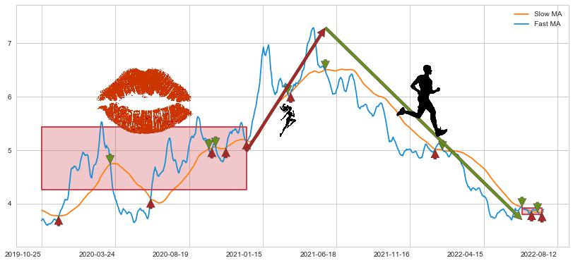 2021-05-27至2022-07-04 慢线与快线呈空头排列, 慢线与快线接触少,无缠绕