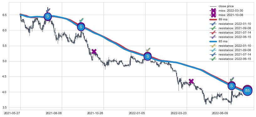 ➢ 最优均线组合共正确确认支撑阻力信号7处,正确确认率 77.78%