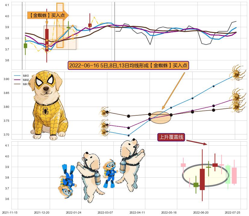 | 3 🅚:上涨两颗星 | 上涨三颗星 ➕ 🎢:【金蜘蛛】买入点均线组合买入点信号形成后,猜想三条均线周期内的交易者都看好后市,持续上涨 ☞ 看多信号 ⇥ 【均线】交织【🅚线】⇥ 综合量化分数: 51 | > |