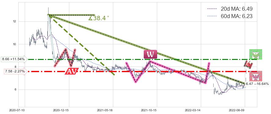 ♘ 阻力价格位8.66,可信任强度55.82%,距离最后交易2022-08-12形成的收盘价格7.76相差 +11.54%
