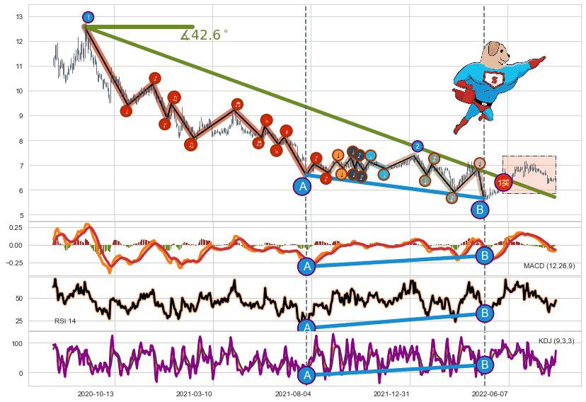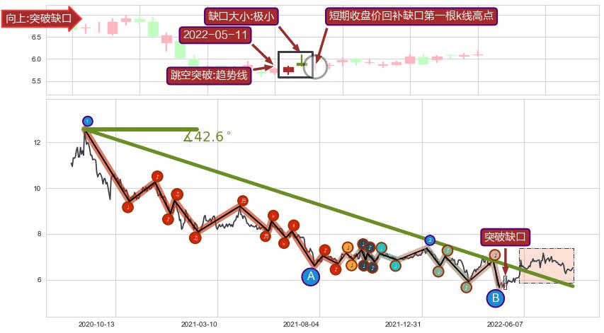 ➣ 2020-08-24-2022-05-31下跌趋势存在反转上涨[机会],其原下跌趋势的阻力位(5.71)已被突破[强支撑信号],原下跌趋势角度: 42.6˚