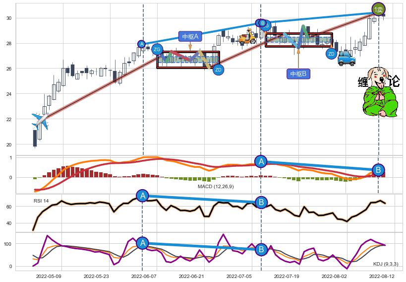 ➣ 【已完成】缠论 起点:2022-04-27,完成第1中枢A,完成第2中枢B,终点:2022-08-11,缠论共74交易日