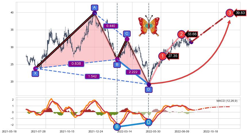 ➣ 已完成【蝴蝶】形态起点X: 2021-07-02, 终点D: 2022-04-26, 共198交易日