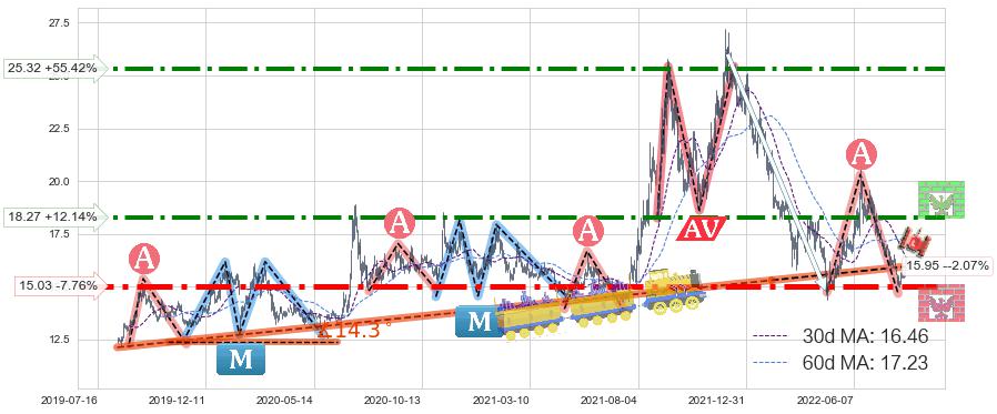 ♘ 阻力价格位18.27,可信任强度83.51%,距离最后交易2022-08-12形成的收盘价格16.29相差 +12.14%