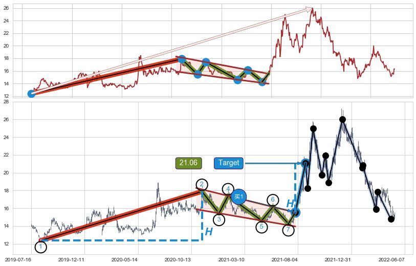 ➣ 最小中继整理涨幅→𝐇: 5.52 (𝐇旗杆的长度:旗杆起点→顶点)