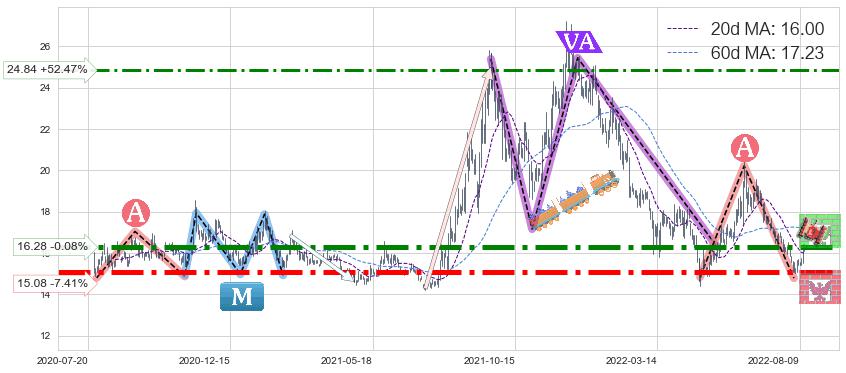 ➣ 【已确认突破】最后价格:16.29与最小【反转】第一目标价格→(2022-09-09: 11.74 )相较: 下跌空间【中等】
