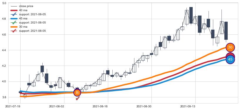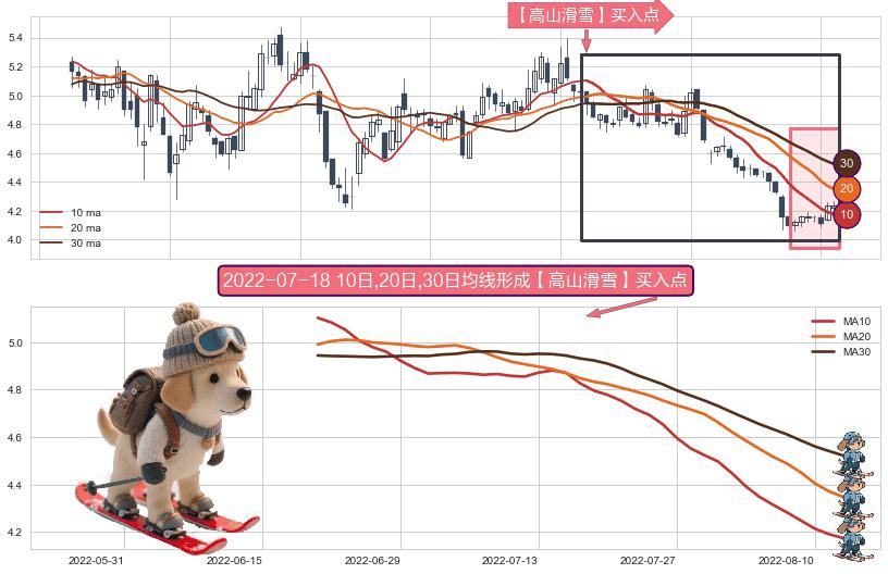 ⚀ 2022-06-21日-2022-08-12日显现 10日-20日-30日均线 【高山滑雪】买入点 看多信号,后市看涨,买入