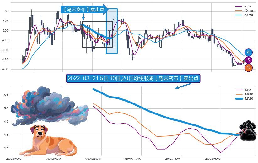 ⚀ 2022-03-07日-2022-04-01日显现 5日-10日-20日均线 【乌云密布】卖出点 看空信号,后市看跌,卖出
