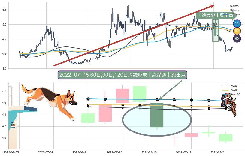 ⚀ 2022-07-15日显现 60日-90日-120日均线 【绝命跳】卖出点 看空信号,后市看跌,卖出