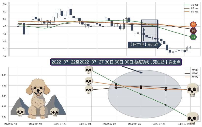 ⚀ 2022-07-25-日至2022-07-27-日显现 30日-60日-90日均线 【死亡谷】卖出点 看空信号,后市看跌,卖出