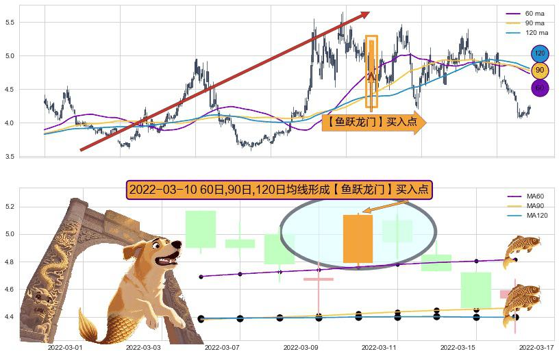 ⚀ 2022-03-10日显现 60日-90日-120日均线 【鱼跃龙门】买入点 看多信号,后市看涨,买入