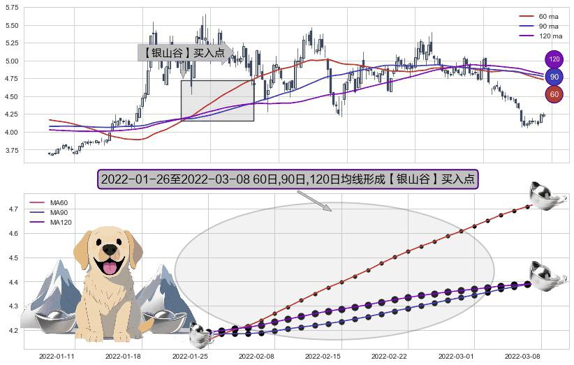 ⚀ 2022-01-27-日至2022-03-08-日显现 60日-90日-120日均线 【银山谷】买入点 看多信号,后市看涨,买入