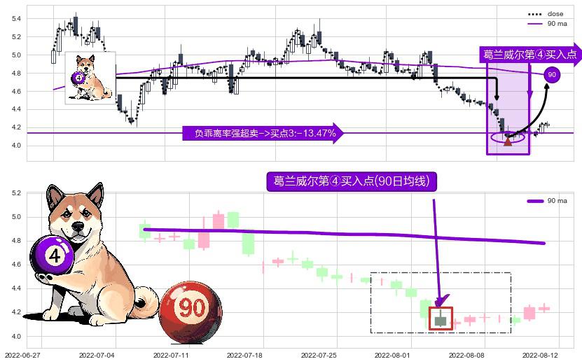 ⚀ 2022-08-03-日显现 葛兰威尔均线 90日均线 第④买入点 下降趋势均值回复的短线反弹信号,后市看涨,买进信号