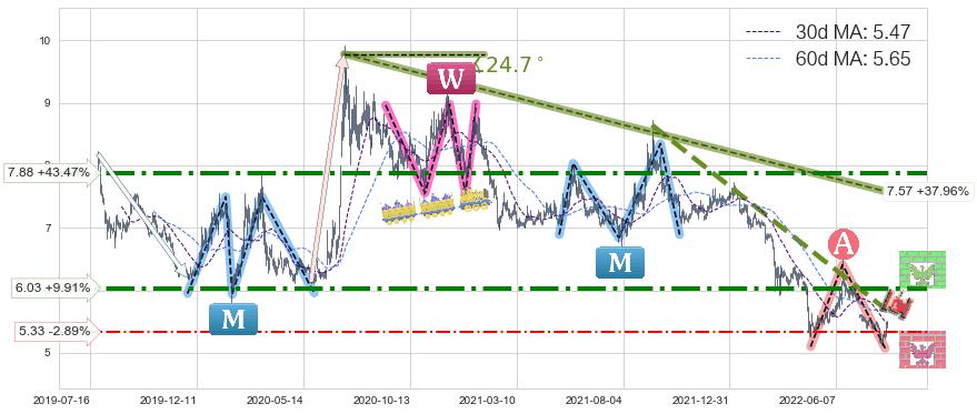 ➣ 【仅预测突破】最后价格:5.49与预测突破价格:5.92→【空间中等】后续最小【整理】第一目标价格→(2022-12-21: 9.73 )