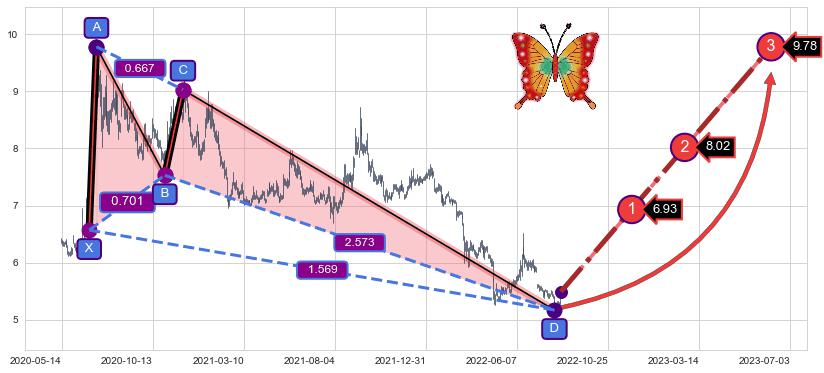 ➣ 已完成【蝴蝶】形态起点X: 2020-06-29, 终点D: 2022-08-03, 共512交易日