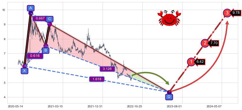➣ 未完成【螃蟹】形态起点X: 2020-05-25, 已到达C点: 2020-11-27, 预测最终D点: 2023-05-02, 共722交易日