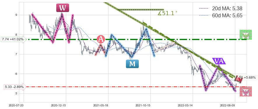 ♞ 20日均线:5.38,60日均线:5.65→ 快线<慢线