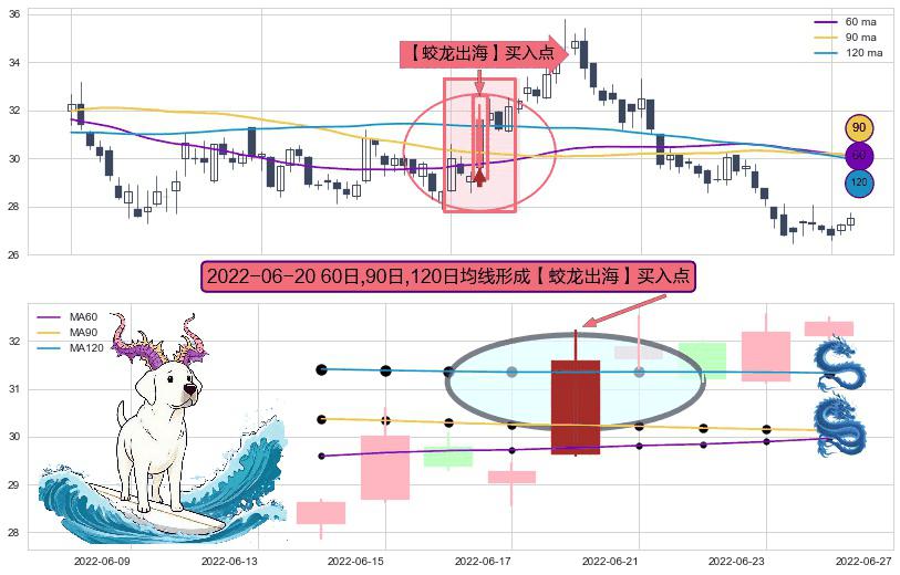 ⚀ 2022-06-20日显现 60日-90日-120日均线 【蛟龙出海】买入点 看多信号,后市看涨,买入