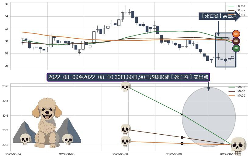 ⚀ 2022-08-10-日至2022-08-10-日显现 30日-60日-90日均线 【死亡谷】卖出点 看空信号,后市看跌,卖出