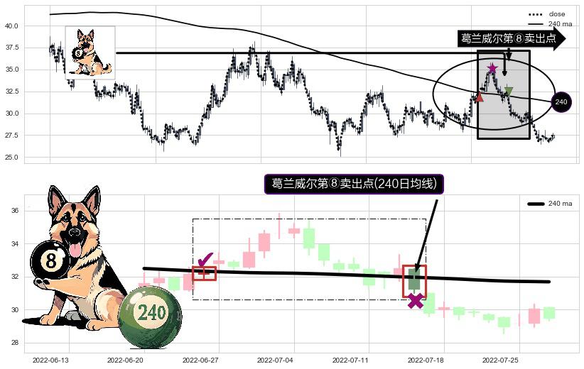 ⚀ 2022-07-14-日显现 葛兰威尔均线 240日均线 第⑧卖出点 下降趋势的中继信号,后市看跌,卖出信号