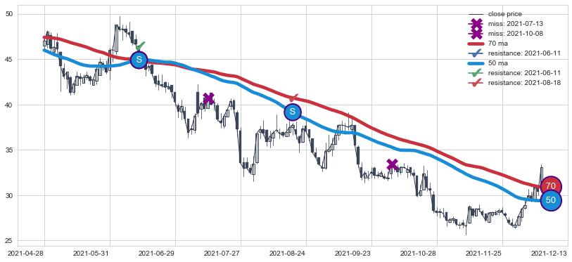 ⚂ 2022-06-24-日均线向上突破,2022-07-14-日重新下穿均线破位,均线阻力再次生效