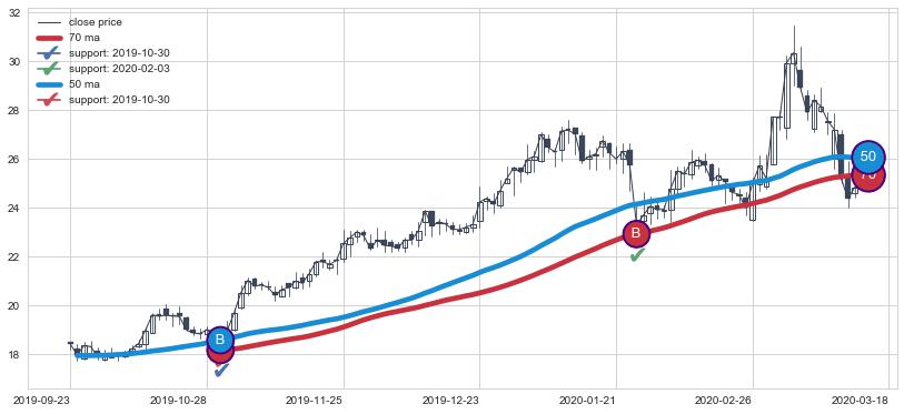 ➢ 最优均线组合共正确确认支撑阻力信号7处,正确确认率 70.00%