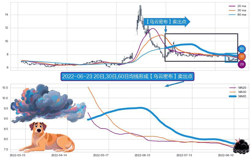 ⚀ 2022-04-28日-2022-08-12日显现 20日-30日-60日均线 【乌云密布】卖出点 看空信号,后市看跌,卖出
