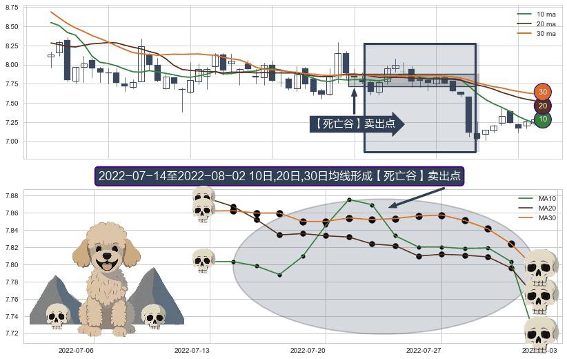 ⚀ 2022-07-15-日至2022-08-02-日显现 10日-20日-30日均线 【死亡谷】卖出点 看空信号,后市看跌,卖出