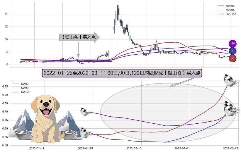 ⚀ 2022-01-26-日至2022-03-11-日显现 60日-90日-120日均线 【银山谷】买入点 看多信号,后市看涨,买入
