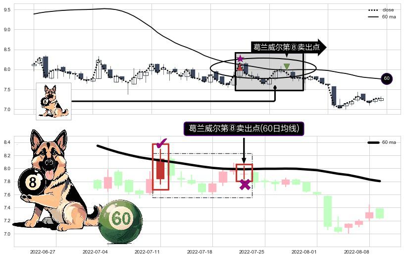 ⚀ 2022-07-21-日显现 葛兰威尔均线 60日均线 第⑧卖出点 下降趋势的中继信号,后市看跌,卖出信号