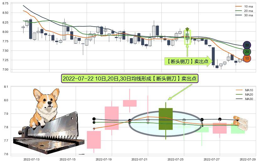 ⚀ 2022-07-22日显现 10日-20日-30日均线 【断头铡刀】卖出点 看空信号,后市看跌,卖出