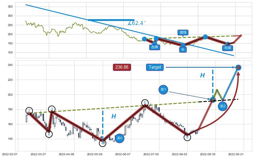 ➣ 【未确认突破,预测即将形成突破】头肩底起点:2021-12-10, 预测突破点:2022-08-26,形态共174交易日