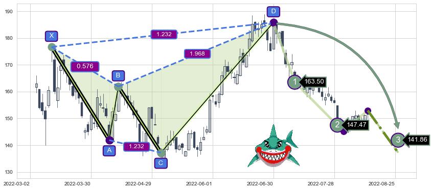 ➣ 已完成【鲨鱼】形态起点X: 2022-03-11, 终点D: 2022-06-30, 共74交易日
