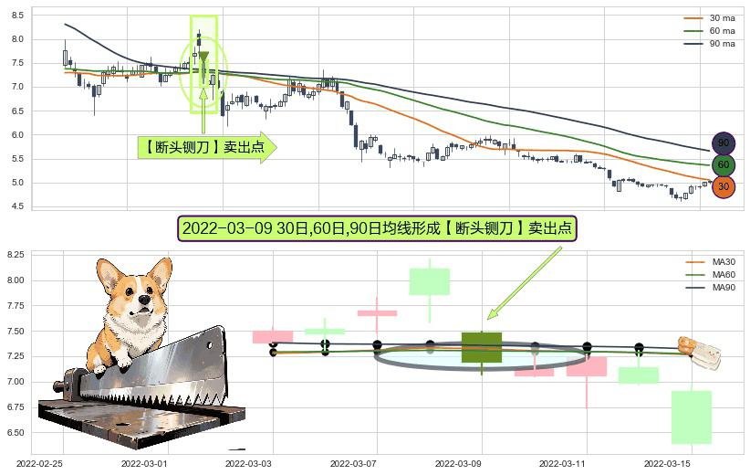 形态多维评估: ⚀ 2022-03-09日显现 30日-60日-90日均线 【断头铡刀】卖出点 看空信号,后市看跌,卖出