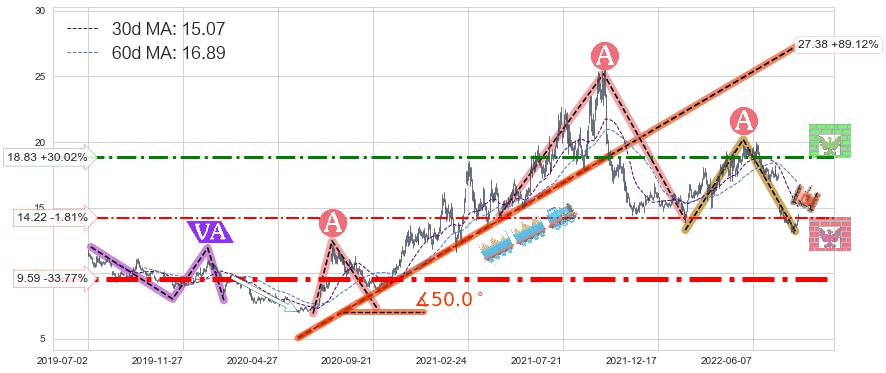 ♘ 阻力价格位18.83,可信任强度69.35%,距离最后交易2022-08-12形成的收盘价格14.48相差 +30.02%
