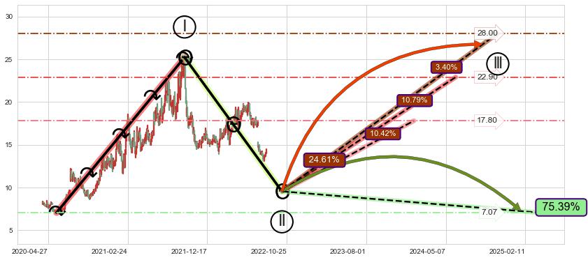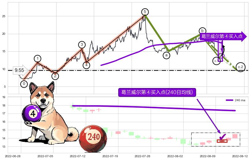 ♘ 支撑价格位14.22,可信任强度51.09%,距离最后交易2022-08-12形成的收盘价格14.48相差 -1.81%