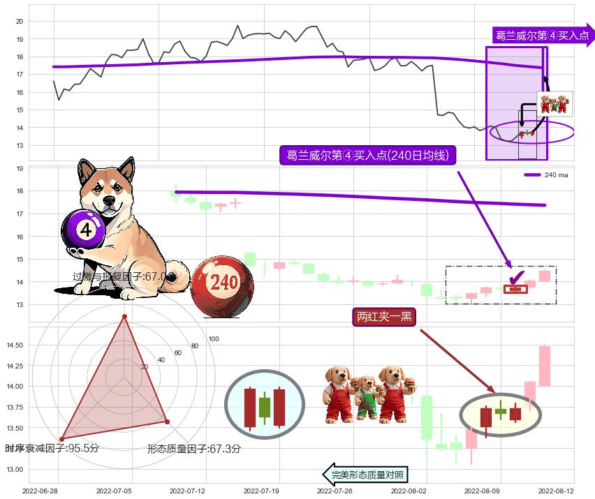 | 3 🅚:早晨之星(黎明之星) ➕ 🎢:葛兰威尔第④买入点买入点信号形成后,猜想后续走势持续反弹上升(均值回复) ☞ 看多信号 ⇥ 【均线】交织【🅚线】⇥ 综合量化分数: 51 | > |