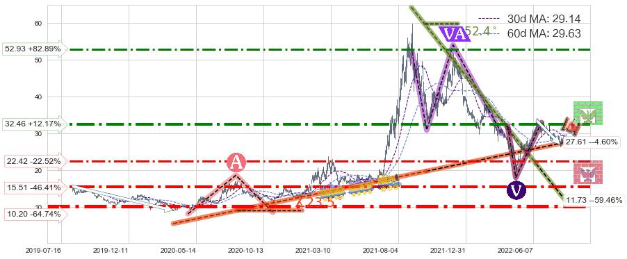 ♘ 支撑价格位22.42,可信任强度57.72%,距离最后交易2022-08-12形成的收盘价格28.94相差 -22.52%