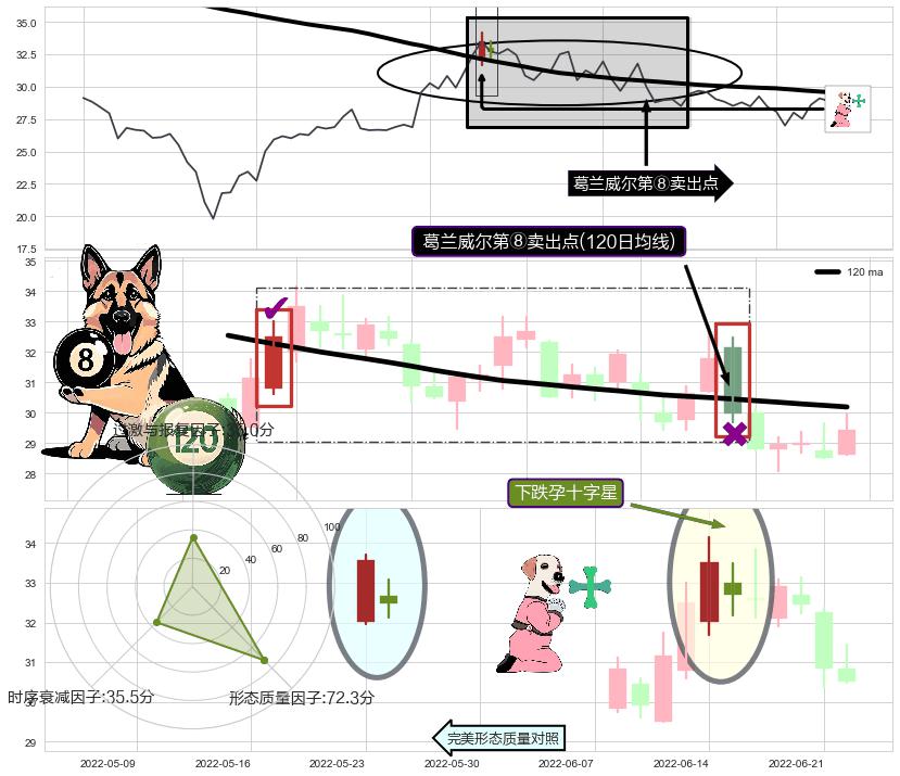 | 4 🅚:看跌(高位倒锤头)流星线 ➕ 🎢:葛兰威尔第⑧卖出点卖出点信号形成后,猜想后续持续下行(趋势跟踪) ☞ 看空信号 ⇥ 【均线】交织【🅚线】⇥ 综合量化分数: 42 | > |